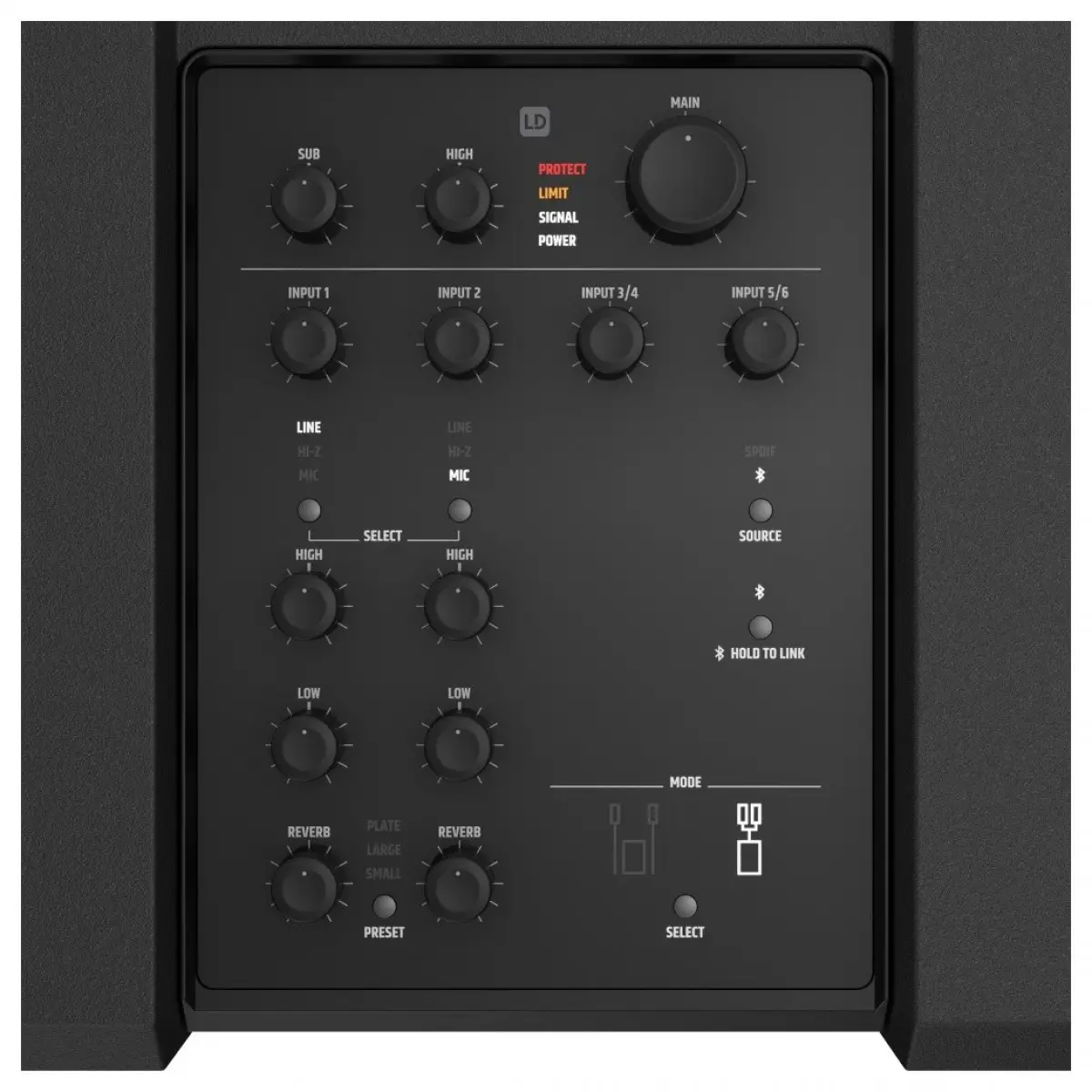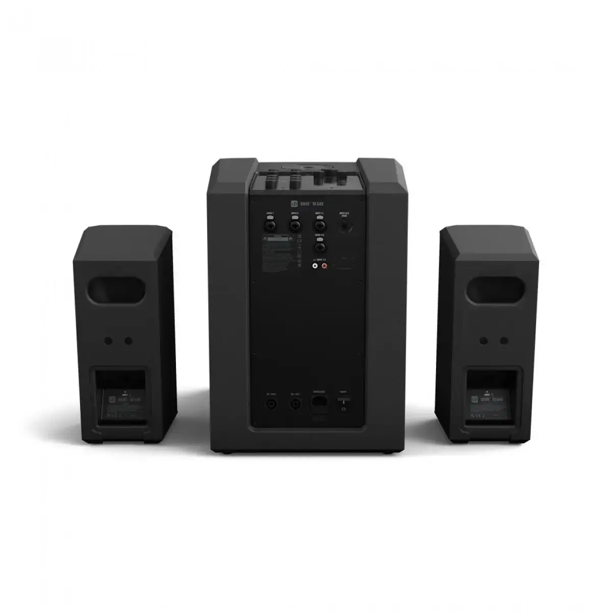 Sistema PA attivo 2.1 con subwoofer da 10" e due diffusori satellite da 4". Potente e versatile, perfetto per eventi e performance musicali.