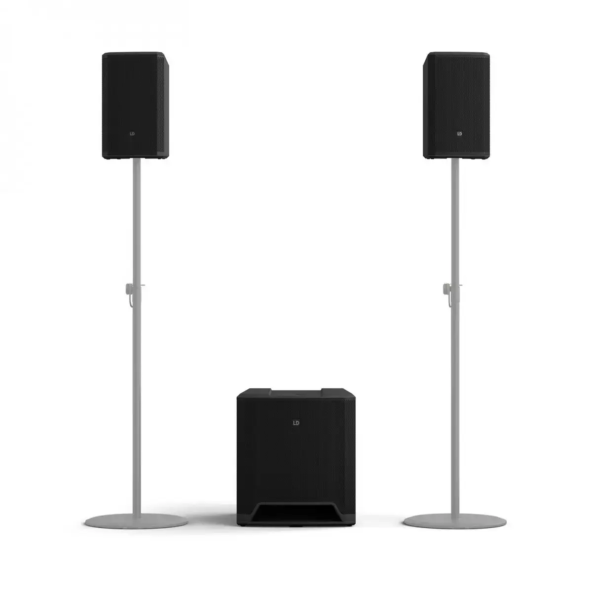 Sistema PA attivo 2.1 composto da un subwoofer da 15" e due satelliti da 8" con una potenza totale di 2060 W.