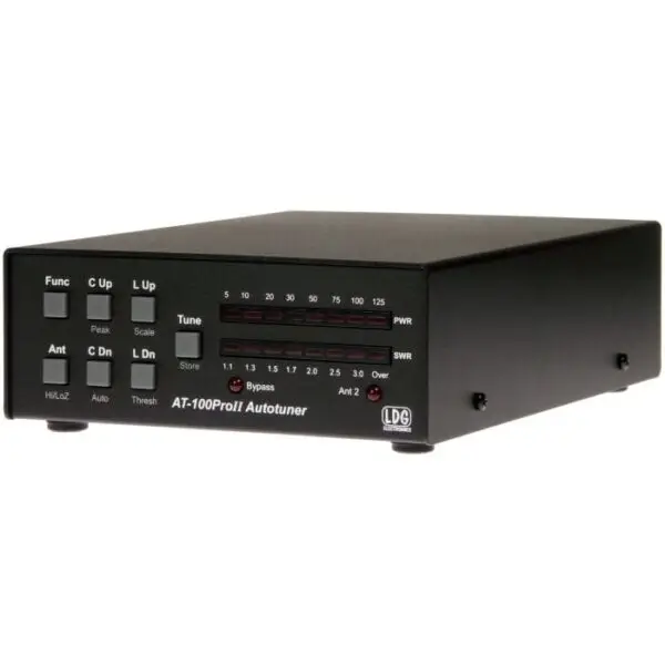 L’LDG AT-100Pro2 è un accordatore automatico progettato per coprire le frequenze da 1.8 a 54 MHz. È ideale per abbinare rapidamente la tua antenna, supportando fino a 125W di potenza.