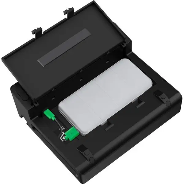- Alimentatore USB con scomparto per power bank esterno (power bank non incluso)