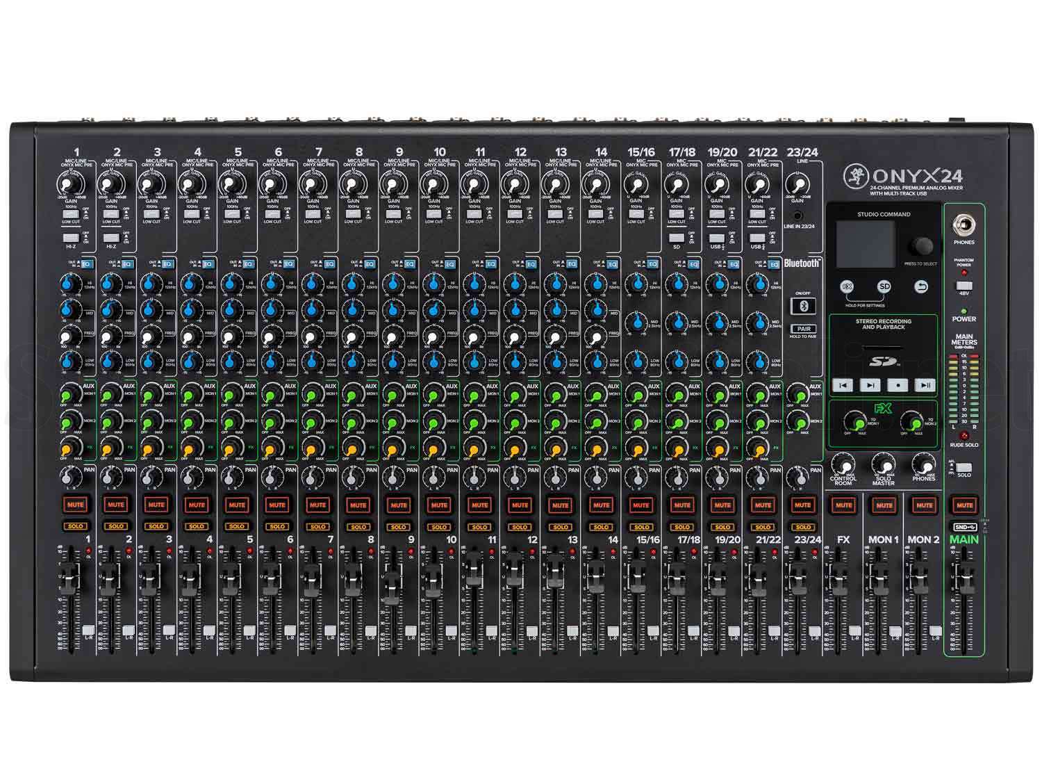 Il Mackie Onyx24 è un mixer analogico premium a 24 canali con USB, che rappresenta la soluzione compatta più avanzata per l’audio dal vivo, la registrazione domestica e la creazione di contenuti. La registrazione multitraccia a 24 bit / 96 kHz, i pluripremiati preamplificatori microfonici Onyx ad alto guadagno e il design a bassissimo rumore garantiscono una qualità audio professionale. L’Onyx24 è ricco di funzioni, tra cui potenti effetti DSP, EQ Perkins con suono britannico, display a colori e registrazione integrata e uscita da una scheda SD. Il mixer analogico premium Onyx24 offre le caratteristiche e la potenza necessarie per catturare qualsiasi performance con una fedeltà impeccabile in studio o in viaggio.