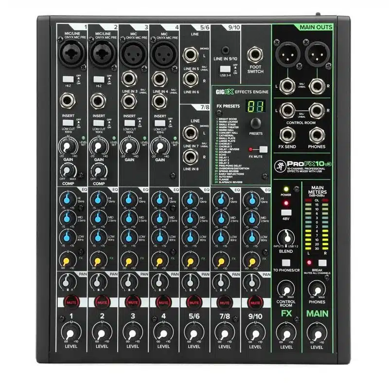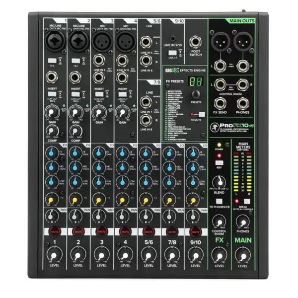Il Mackie ProFX10v3 è una console di mixaggio professionale a 10 canali, ideale per suoni dal vivo, registrazione domestica e creazione di contenuti.