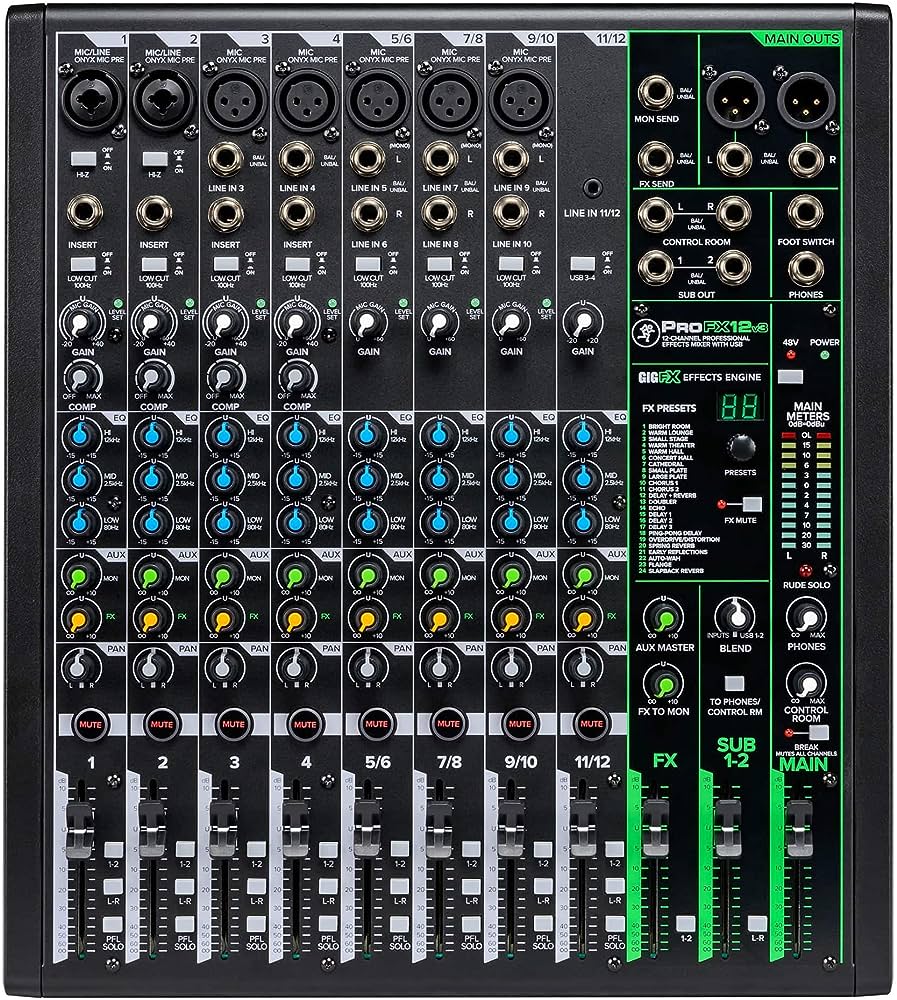 Confronta Aggiungi alla Lista desideriIl Mackie ProFX12v3 è una console di mixaggio professionale a 12 canali ed è l’ultima soluzione economica per il suono dal vivo, la registrazione domestica e la creazione di contenuti. Il mixer è dotato di 7 dei rinomati e ultra-basso rumore preamplificatori microfonici Onyx con fino a 60 dB di guadagno. Questi sono perfetti per i microfoni che richiedono preamplificatori con grandi capacità di guadagno.