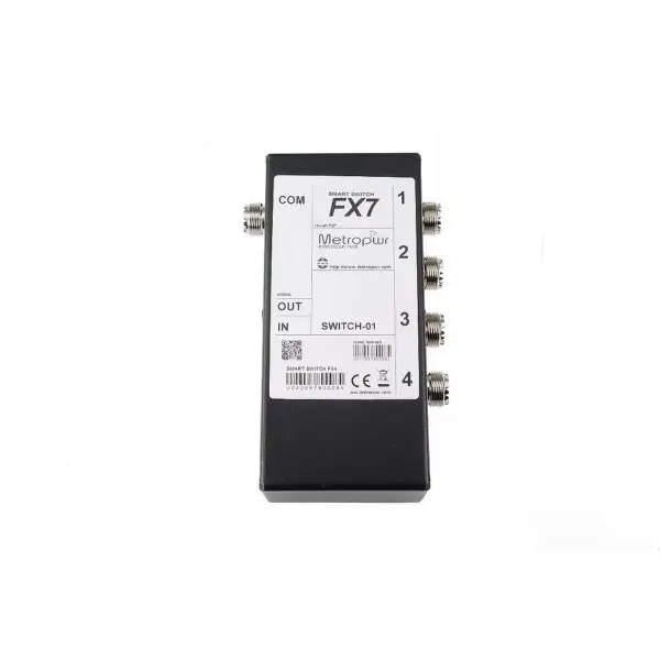 Il commutatore d'antenna a 4 posizioni FX-7 è parte del sistema FX-77x di MetroVNA, progettato per misurazioni di segnali HF.