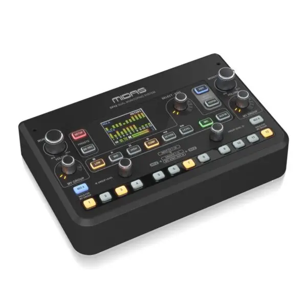 Doppio mixer monitor personale a 48 canali Midas DP 48, progettato per fornire un'esperienza di monitoraggio ottimale a musicisti e tecnici del suono.