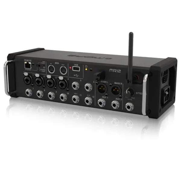 Il Midas MR12 è un mixer digitale a 12 ingressi che combina versatilità e potenza in un formato compatto, facilmente controllabile tramite tablet Android o iOS.