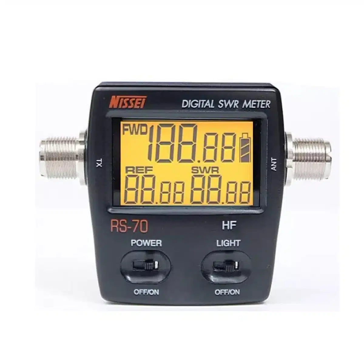 Il Nissei RS-70 è un rosmetro wattmetro digitale, progettato per dare letture precise della potenza diretta, riflessa e del ROS. Con un display ampio e chiaro, è uno strumento ideale per appassionati e professionisti.