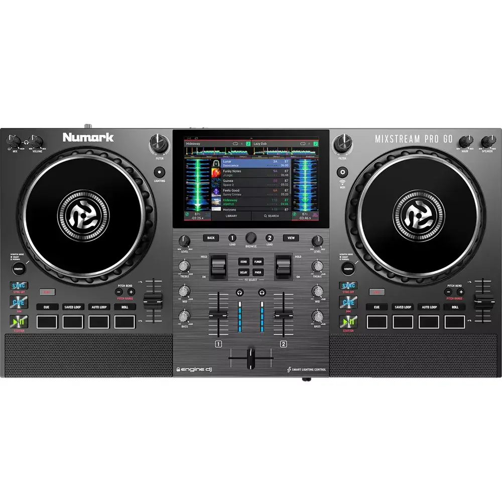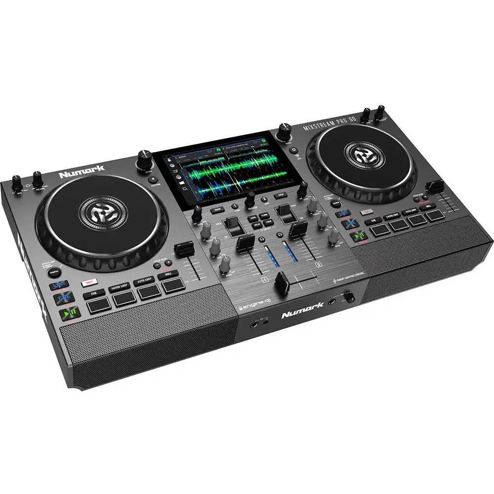 Il Numark Mixstream Pro GO è una console DJ indipendente con batteria interna, progettata per performance in streaming e DJing senza laptop.