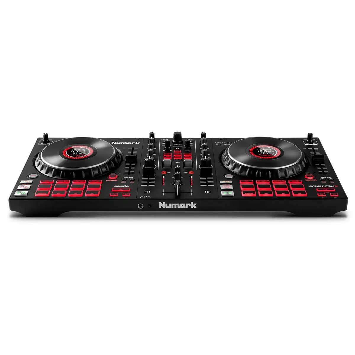 Per il monitoraggio dei DJ, è presente un’uscita per cuffie con controlli cue associati, mentre l’uscita master (RCA) fornisce audio di qualità a 24 bit a un sistema di altoparlanti o amplificatori. È presente anche un ingresso microfonico con jack da 6,3 mm per il collegamento di un microfono dinamico. Insieme al Numark Mixtrack Platinum FX, sono inclusi un cavo USB e una scheda per il download del software Serato DJ-Lite, per un utilizzo immediato.