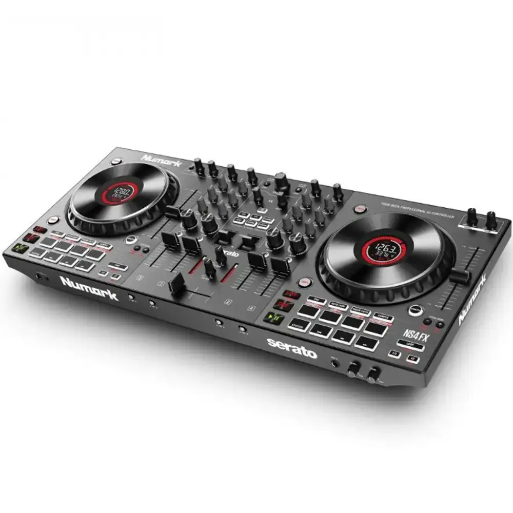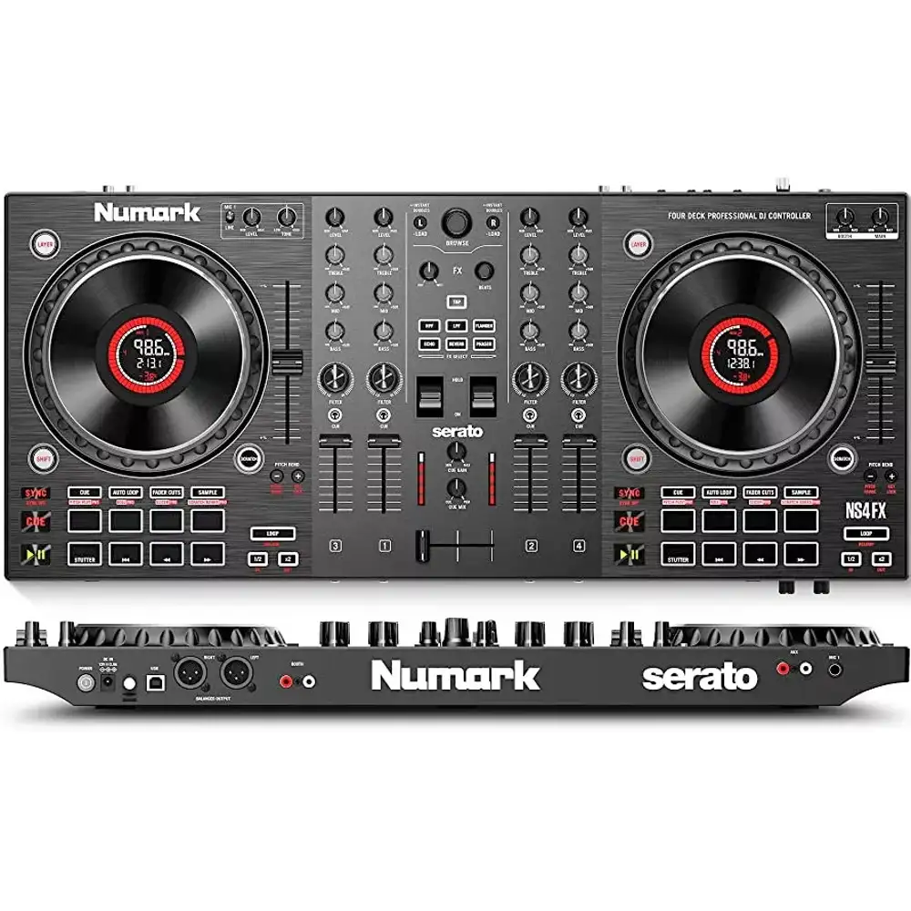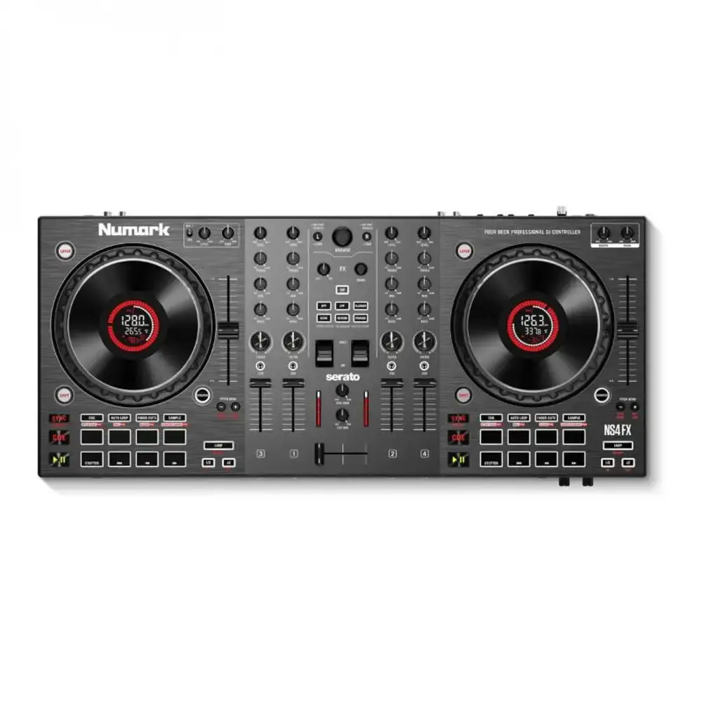 Con l’NS4 FX, l’azienda Numark manda in gara un nuovo controller a 4 deck con uscite XLR bilanciate. Utilizzando 4 canali indipendenti, i DJ possono controllare perfettamente tracce, campioni e loop con un fader del volume, un EQ a 3 bande e un filtro passa alto/basso su ciascuno. Le jog wheel da 6 pollici sensibili al tocco sono state calibrate per un mixaggio e uno scratching precisi. Un display a LED dinamico si trova su ciascuna delle jog wheel , mostrando la posizione della traccia, il pitch range, i BPM e il tempo di esecuzione. Il pulsante layer permette di passare rapidamente al deck padre o figlio. La sezione loop dedicata con moltiplicatori per ogni deck ti permette di entrare rapidamente ed efficacemente nell’azione, estendendo le parti preferite di una canzone a tuo piacimento. Gli interruttori a levetta possono essere utilizzati per attivare uno dei 6 diversi effetti software (HPF, LPF, Flanger, Echo, Reverb o Phaser) temporaneamente o permanentemente per il deck selezionato. Il Numark NS4FX è sbloccato in fabbrica per Serato DJ Lite, il software consente di iniziare immediatamente con il Mix su 2 canali. Poiché Serato DJ Pro (non incluso!) è già mappato per l’NS4FX, i DJ con Serato DJ Pro, possono passare a un ‘ esperienza completa a 4 canali ! Il controller Numark – NS4FX è anche compatibile con altri programmi, come Virtual DJ e Algoriddim djay Pro AI. Smartphone, lettori CD/media o dispositivi simili possono essere collegati tramite l’ingresso AUX aggiuntivo e utilizzati come lettori di feed.