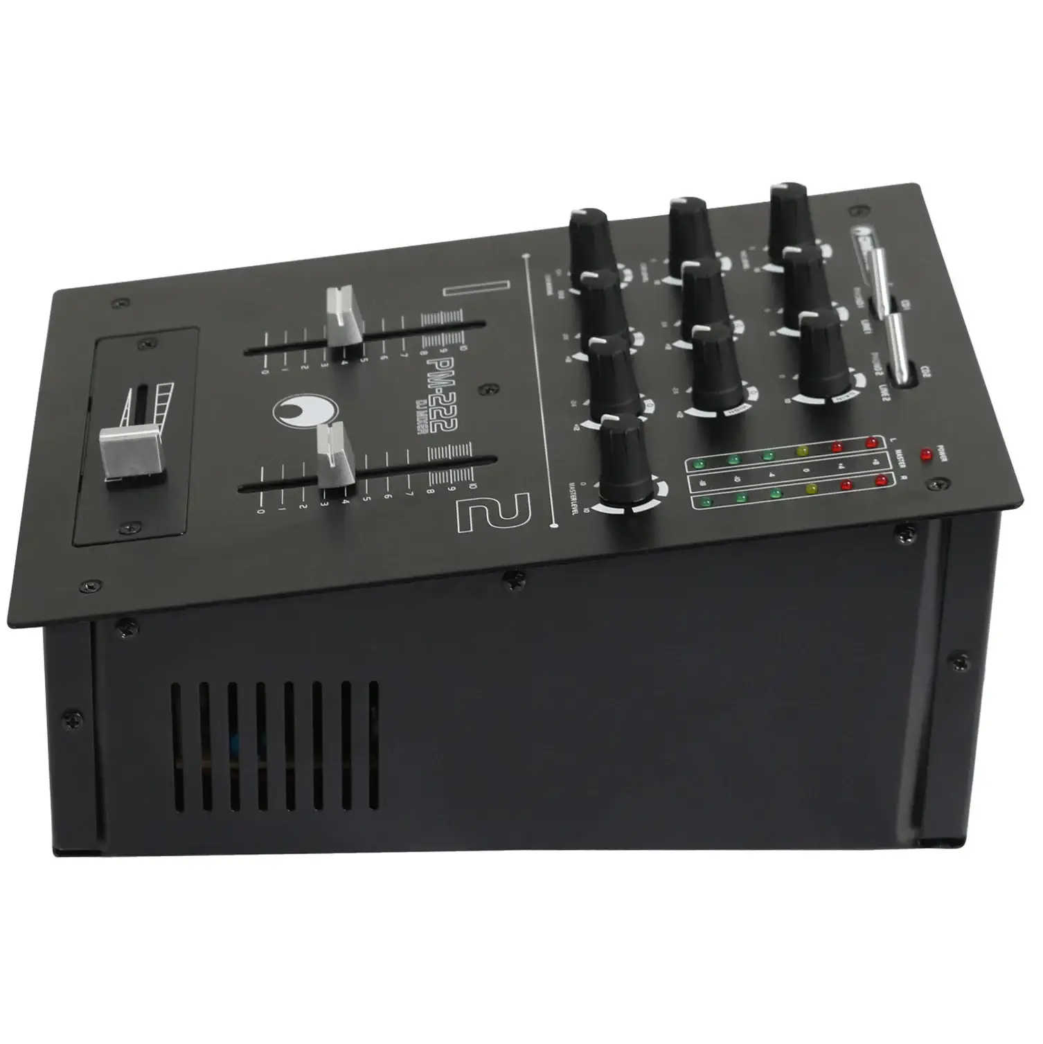 L’Omnitronic PM-222, di facile utilizzo, è il mixer definitivo per i DJ alle prime armi. La sua elegante finitura nera con dettagli bianchi brillanti ti offre una chiara panoramica al buio, e il mixer è bello e compatto, consentendo un facile trasporto alle feste.