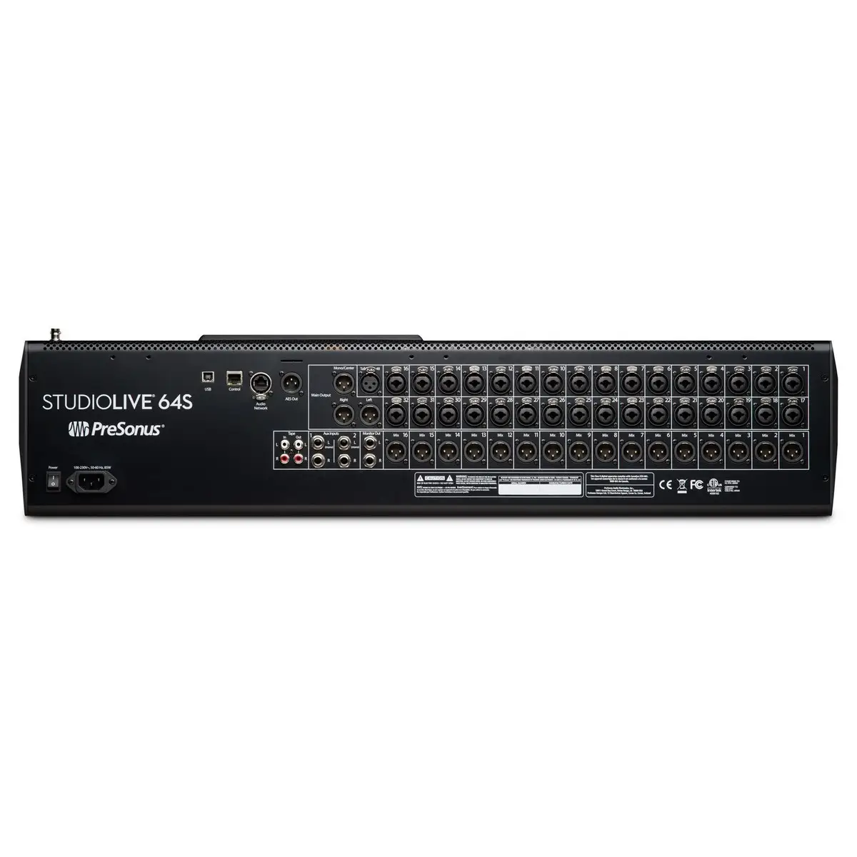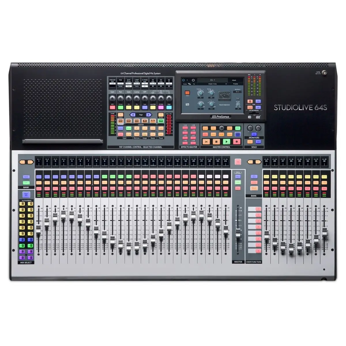 Presonus Il StudioLive 64S mixer è la soluzione ideale per applicazioni in studio e live che richiedono un elevato grado di flessibilità e qualità del suono. Oltre a 64 canali, tra cui preamplificatori XMAX cristallini e fader motorizzati sensibili al tocco, il mixer offre 43 bus, 24 DCA e 32 FleXMix che possono essere configurati come AUX, sottogruppo o Matrix mix. Inoltre, c’è un’interfaccia di registrazione USB integrata e la possibilità di registrare sul registratore di schede SD integrato, mentre il processore multieffetti FLEX FX integrato con i suoi otto slot per il caricamento degli effetti fornisce ulteriori applicazioni creative. Degni di nota sono anche le scene di mix, che possono essere salvate insieme alle registrazioni per velocizzare i controlli sonori virtuali. Non importa se piccoli o grandi concerti o sessioni di registrazione con chitarristi, cantanti, pianisti o gruppi completi – StudioLive 65S Presonus si distingue per il suo design intuitivo e il suono professionale per applicazioni professionali.