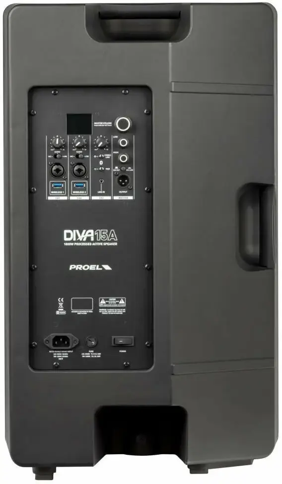 - Sistema di diffusori attivi a 2 vie con woofer a lunga escursione da 15″ e driver a compressione ad alta definizione da 1″.