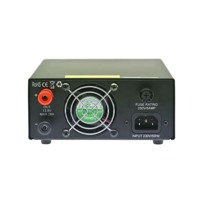 L’alimentatore switching PSU 1228 è progettato per fornire una tensione fissa di 13.8V o una tensione variabile tra 9 e 15V, con una corrente massima di 28A, ideale per l’uso con ricetrasmettitori fino a 100W.