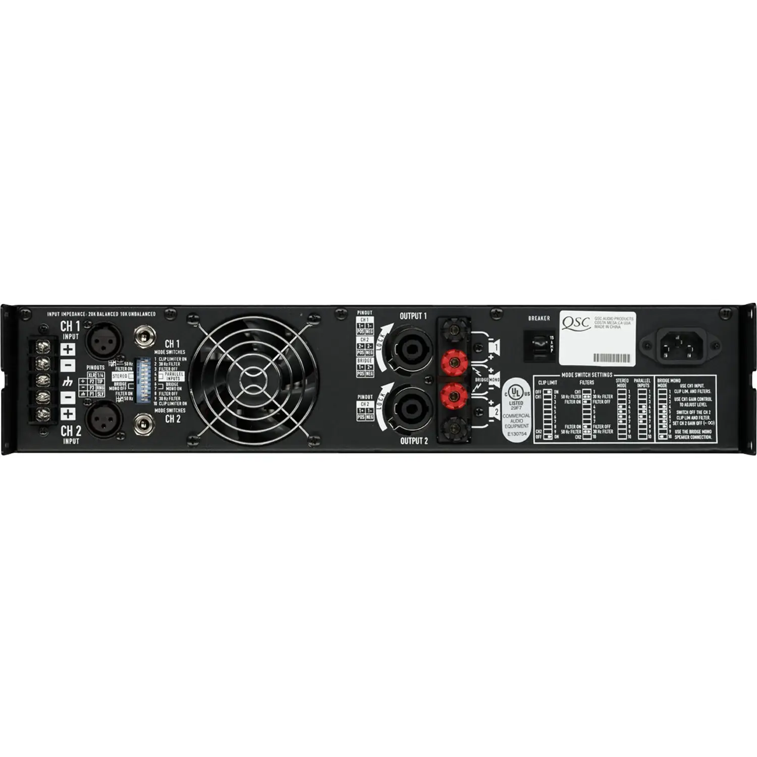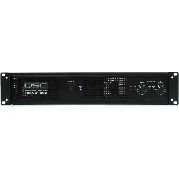 Il QSC RMX 2450a ha una potenza di 2x 750W / 4 Ohm. Diversi circuiti di protezione, come i fusibili termici, proteggono lo stadio finale da sovraccarichi e danni. L’ingresso del segnale avviene tramite XLR, jack o terminali a vite, l’uscita tramite Speakon o connessioni a vite/fissaggio a prova di contatto.