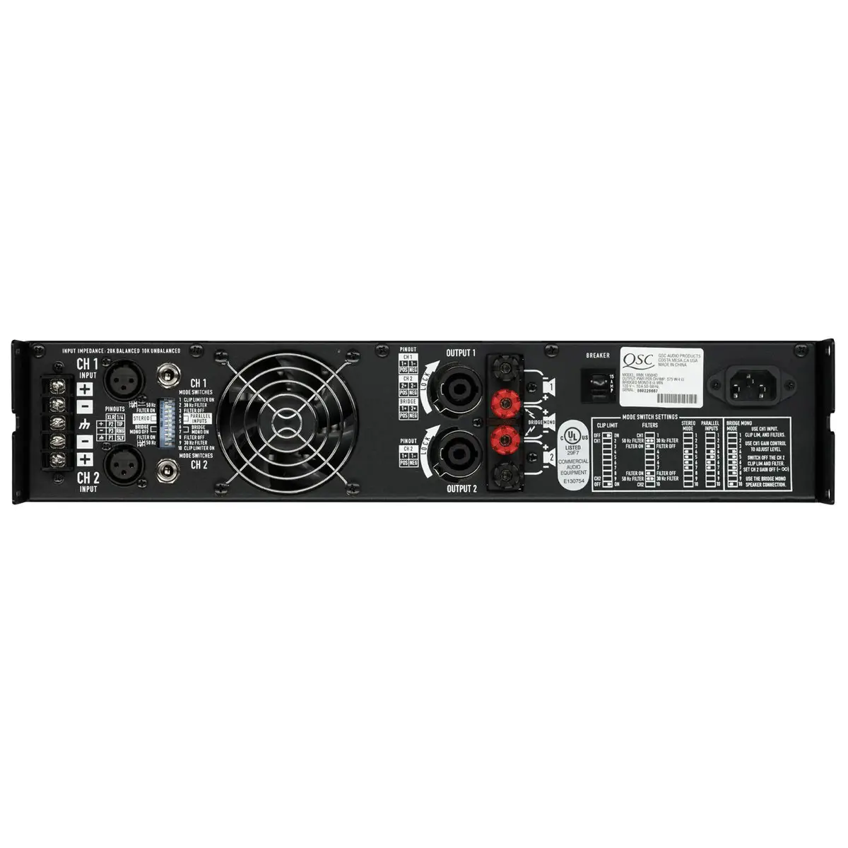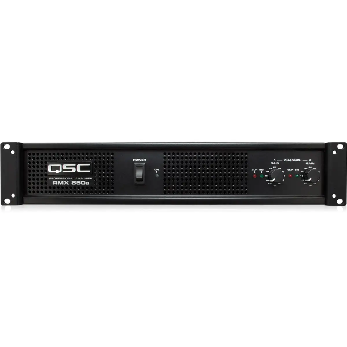 Il QSC RMX 850a ha una potenza di 2x 300W / 4 Ohm. Diversi circuiti di protezione, come i fusibili termici, proteggono lo stadio finale da sovraccarichi e danni. L’ingresso del segnale avviene tramite XLR, jack o terminali a vite, l’uscita tramite Speakon o connessioni a vite/fissaggio a prova di contatto.