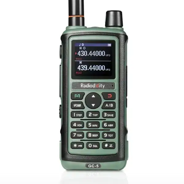 Il Radioddity GC-5 è un ricetrasmettitore portatile dual band VHF/UHF che offre un'ampia gamma di funzionalità per una comunicazione chiara e affidabile.