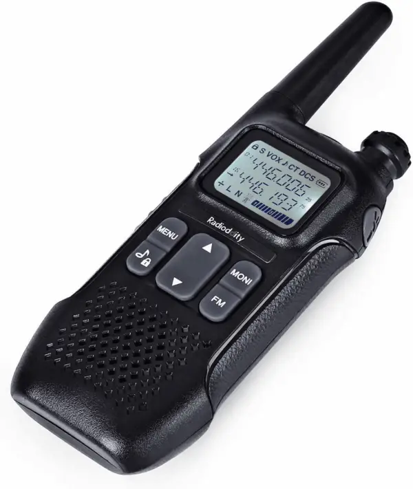 Il PR-T1 è un compatto walkie-talkie PMR446, ideale per comunicazioni di libero uso, sia personali che professionali. Grazie ai suoi 16 canali pre-programmati, offre una portata fino a 4 km in base all'ambiente.
