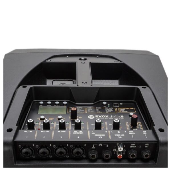 RCF EVOX JMIX8 è un diffusore audio avanzato con un mixer digitale integrato a 8 ingressi, progettato per offrire prestazioni sonore superiori in qualsiasi contesto.