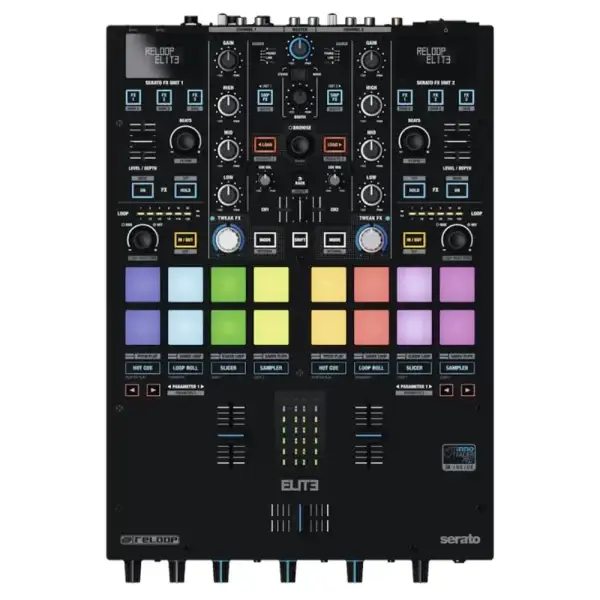 Confronta Aggiungi alla Lista desideriReloop ELITE è un mixer professionale DVS per Serato DJ Pro. 16 pad RGB extra large sensibili alla velocity, 3 fader Innofader Pro di ultima generazione, due unità effetti indipendenti, effetti stand-alone codificati a colori con controllo bipolare (Tweak FX), 2 display OLED ad alto contrasto e sezioni loop dedicate, un’interfaccia audio DUAL 10 In/Out USB 2. 0, EQ a 3 bande isolanti e pratico sistema di pre-mix, porte USB Smart Link con RP-800 automatico. 0, un’interfaccia audio DUAL 10 In/Out USB 2.0, EQ isolatori a 3 bande e un comodo sistema di pre-mix, porte USB Smart Link con rilevamento automatico del deck RP-8000 MK2 e una robusta struttura in metallo con finitura insensibile in nero profondo metallizzato trasformano il Reloop Elite in un mixer DJ Serato da battaglia orientato alle prestazioni.
