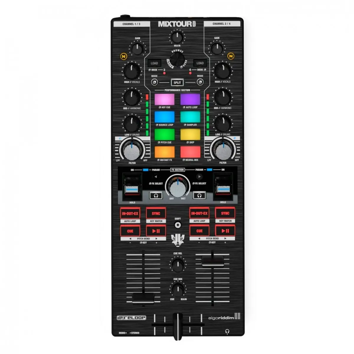 L’interfaccia audio integrata a 4 canali e 24 bit con convertitori D/A Cirrus Logic garantisce un suono ricco e potente che non teme confronti. È uno dei primi controller DJ al mondo a supportare la nuovissima funzione Crossfader Fusion™ di Algoriddim djay, che offre una varietà di stili di transizione crossfader per un mixaggio creativo e transizioni perfette. Inoltre, il Mixtour Pro supporta l’opzione Neural Mix™, che consente di isolare in tempo reale elementi diversi come batteria, voce e strumenti per creare i propri remix o mash-up