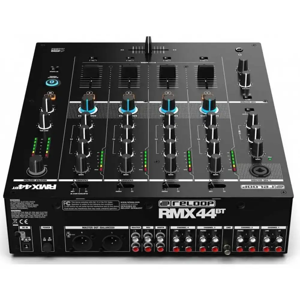 Con il Reloop RMX-44BT si ottiene un robusto mixer per DJ club a 4 canali Bluetooth a 4 canali con molte possibilità di applicazione. Oltre che per l ‘utilizzo nei club , il mixer per DJ è molto adatto anche per bar, DJ mobili e per l’home setup.