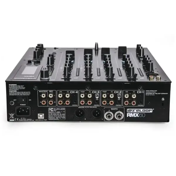 Il display LCD aiuta a mantenere la necessaria visione d’insieme e supporta anche il beat matching. Per le liste di schede, l’RMX-60 Digital offre curve di linea e crossfader regolabili e l’avvio del fader di linea. Inoltre, il crossfader è compatibile anche con Innofader. L’intelligente ”Active Ducking Technology” per il canale microfonico e un sistema firmware a prova di futuro, in grado di aggiornare, completano il quadro del Reloop RMX-60 Digital.