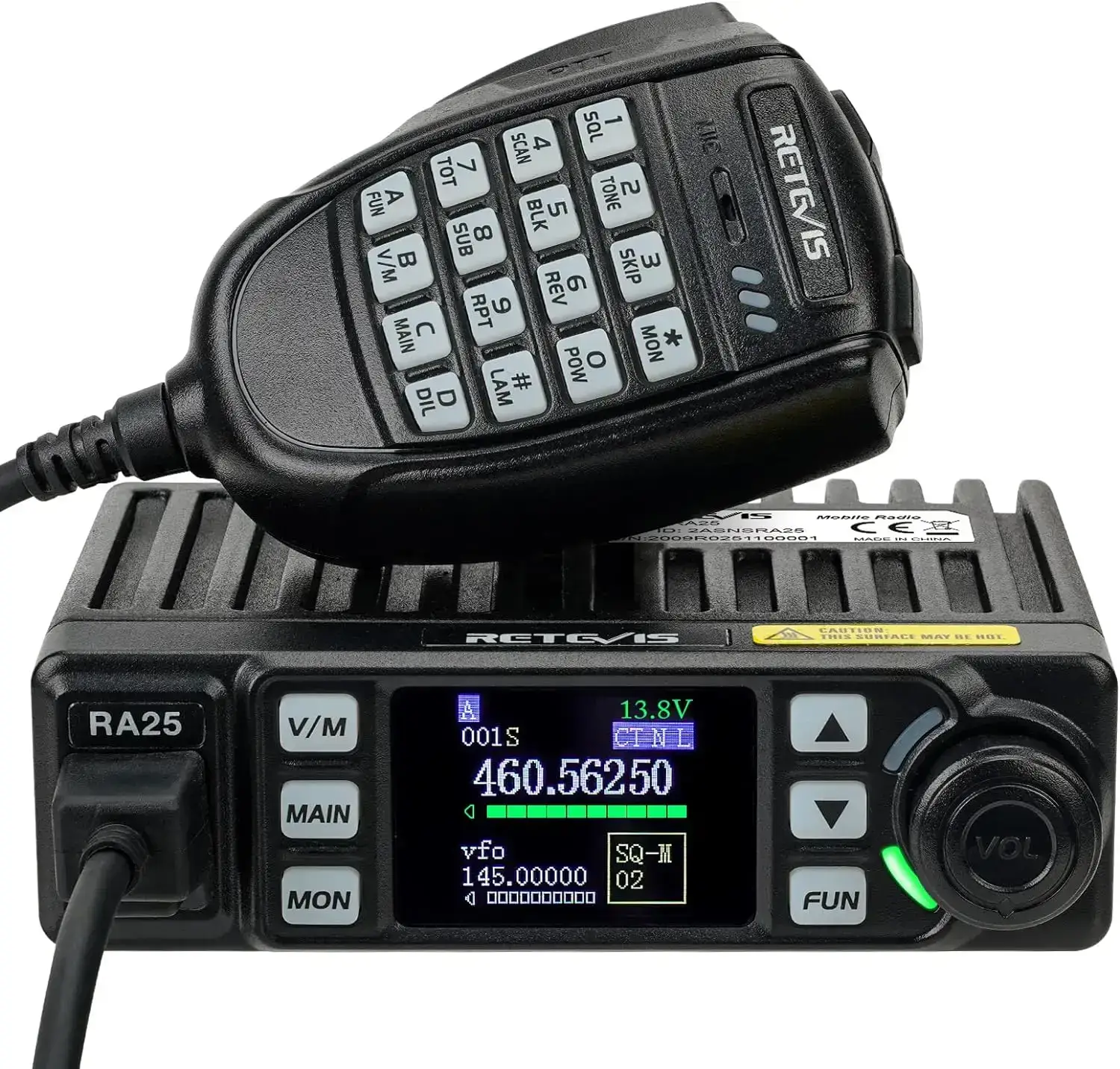 Il Retevis RA25 è un ricetrasmettitore doppia banda progettato per un uso veicolare, ideale per radioamatori e per chi ha bisogno di comunicazioni affidabili su più canali.