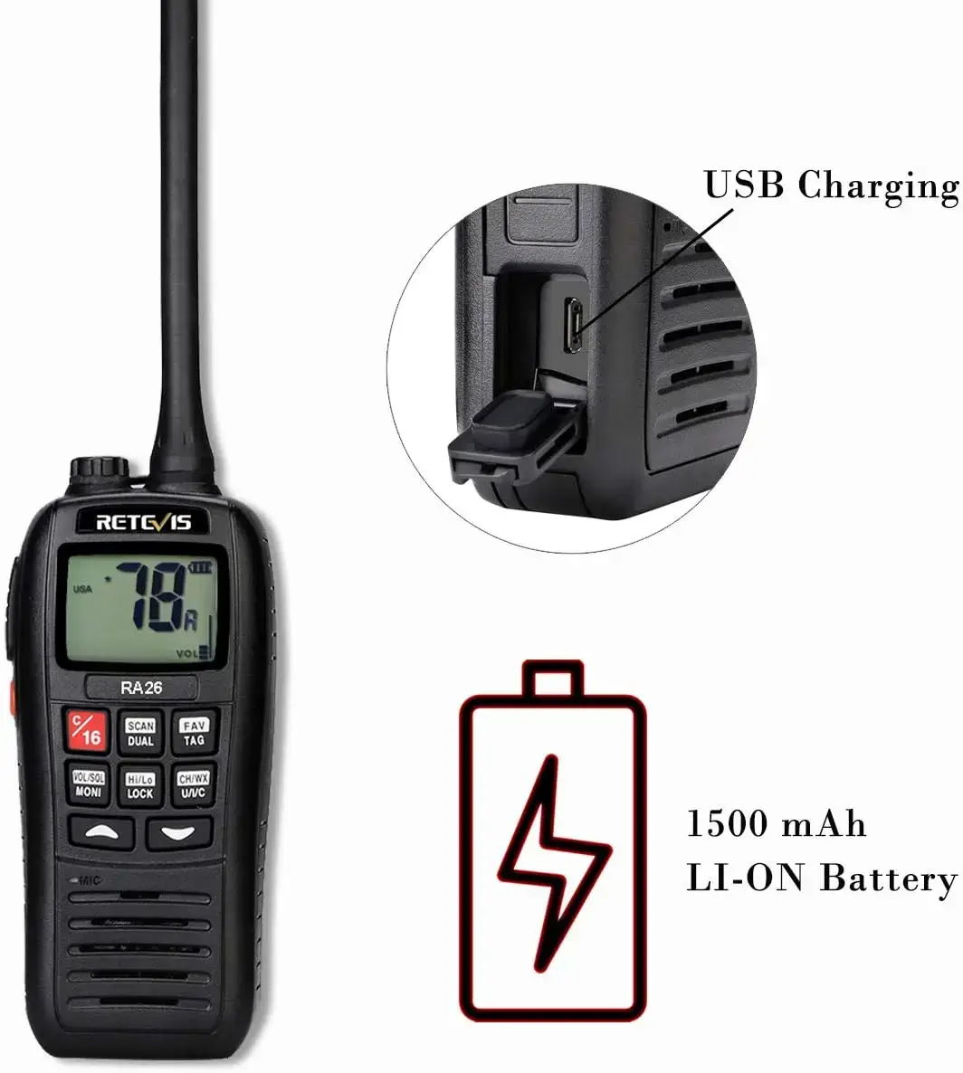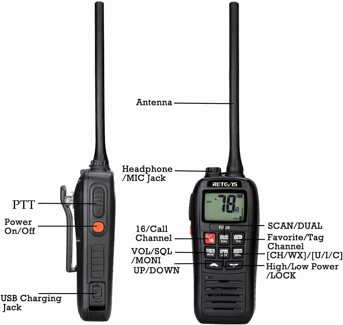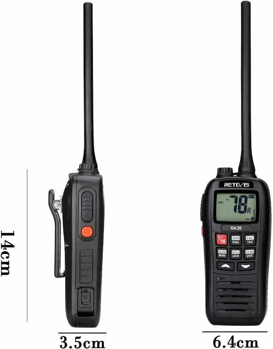 La Retevis RA26 è una ricetrasmittente portatile di alta qualità progettata per l'uso nautico. Con un'impermeabilità IP67 e un'affidabilità incondizionata, è ideale per gli appassionati di nautica che cercano comunicazione chiara e stabile.