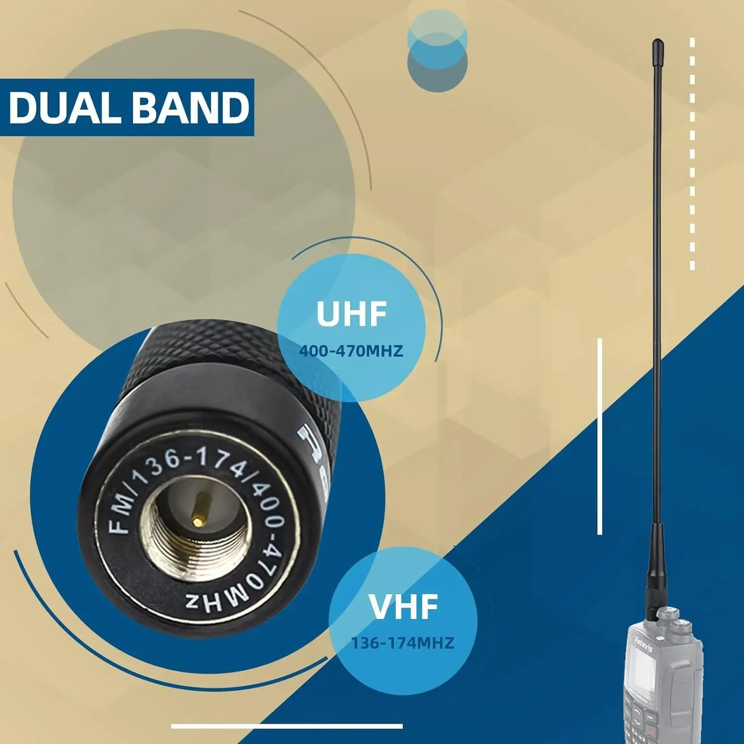 L'antenna Retevis RHD-771 è progettata per migliorare la comunicazione con i ricetrasmettitori, offrendo prestazioni superiori nelle bande VHF e UHF.