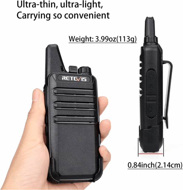 Il Retevis RT622 è un walkie talkie portatile PMR446, progettato per garantire comunicazioni chiare e facili in un formato compatto. Con 16 canali, è ideale per attività all'aperto come camping, escursionismo e sci.