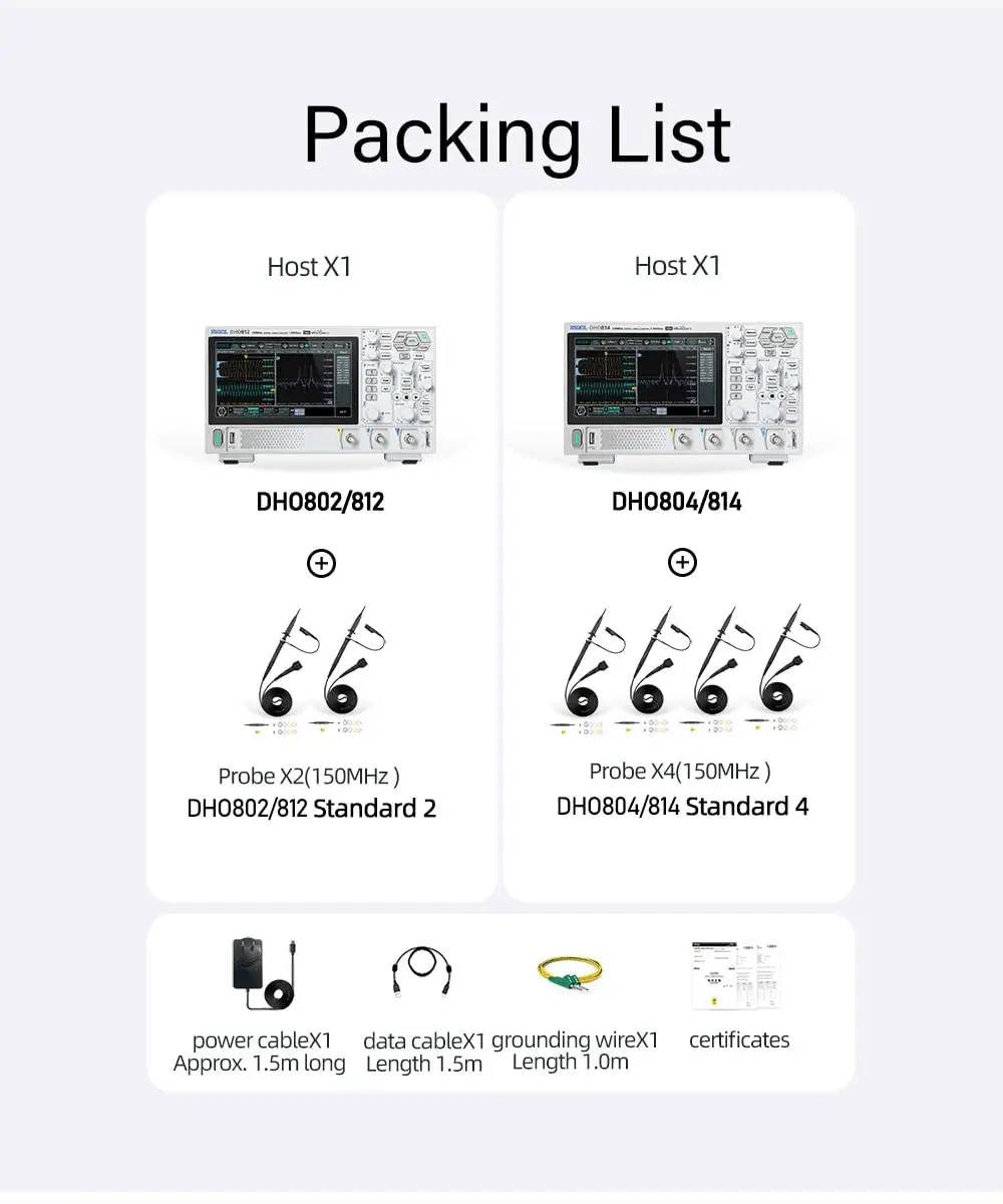 L'oscilloscopio digitale Rigol DHO812 offre una larghezza di banda di 100 MHz e due canali analogici, progettato per garantire misurazioni precise e affidabili, ideale per professionisti e hobbisti dell'elettronica.