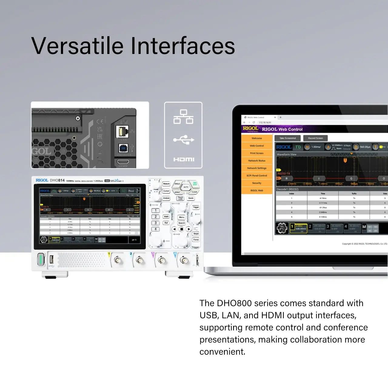 Rigol DHO814 Oscilloscopio Digitale 100 MHz, 4 Canali Analogici, Risoluzione Verticale Di 12 Bit, Basso Livello Di Rumore, Supporto per Alimentazione Mobile