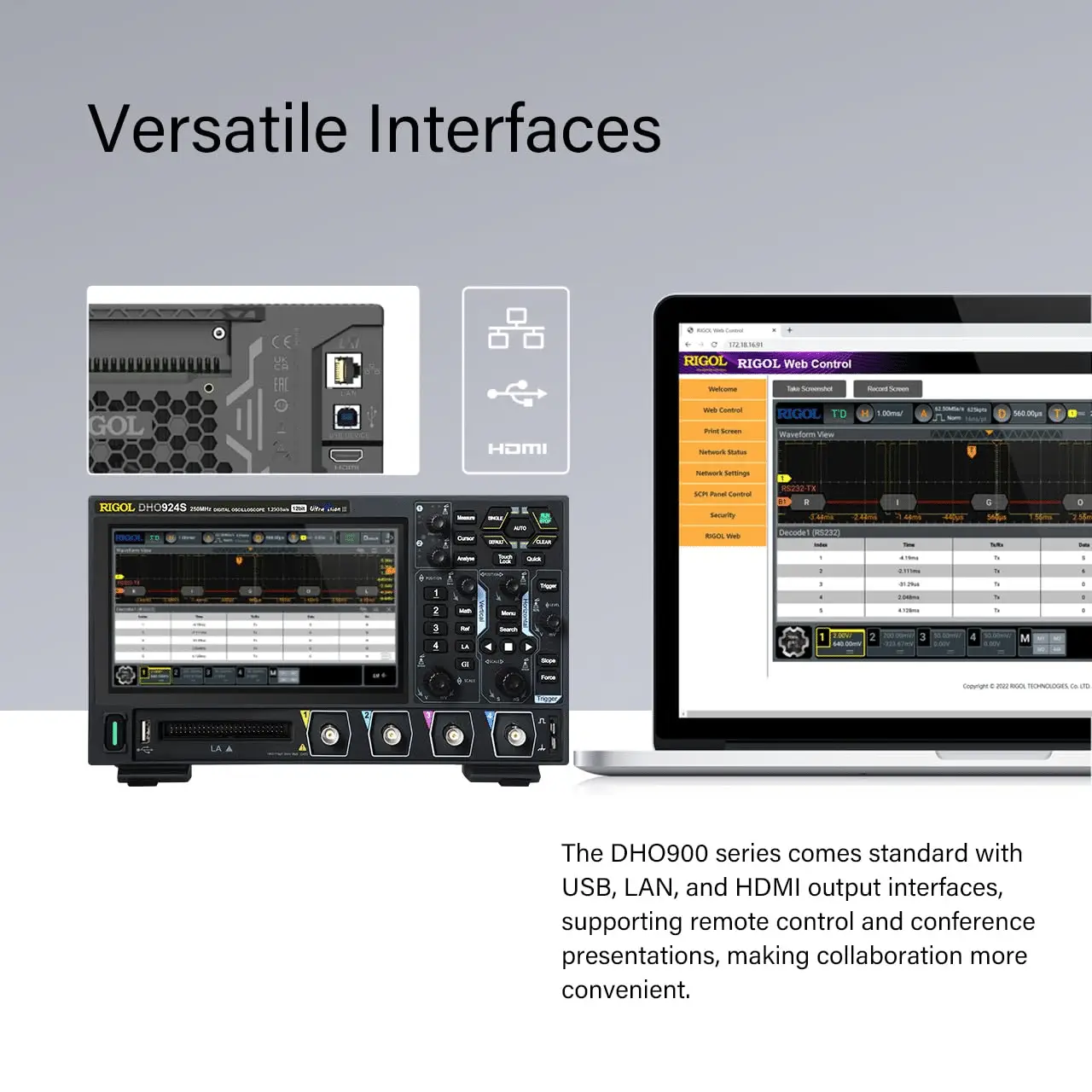 - ?Alimentatore Tipo-C?L’interfaccia di alimentazione Tipo-C è progettata in modo che sia necessario solo un alimentatore mobile per alimentare il DHO914, consentendo test sul campo.