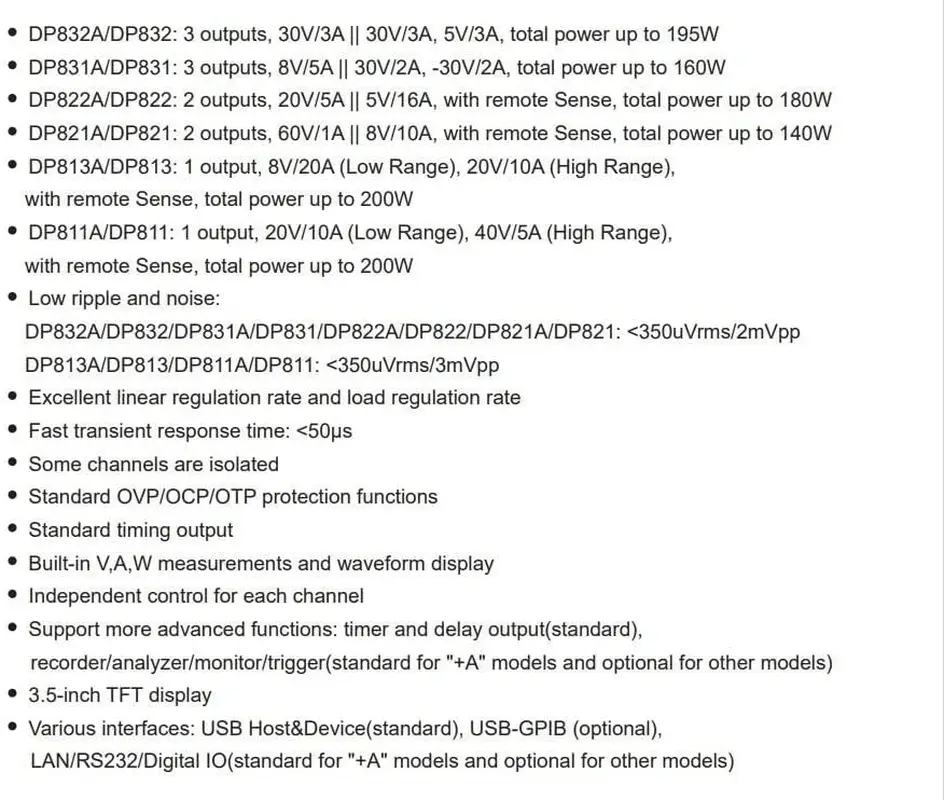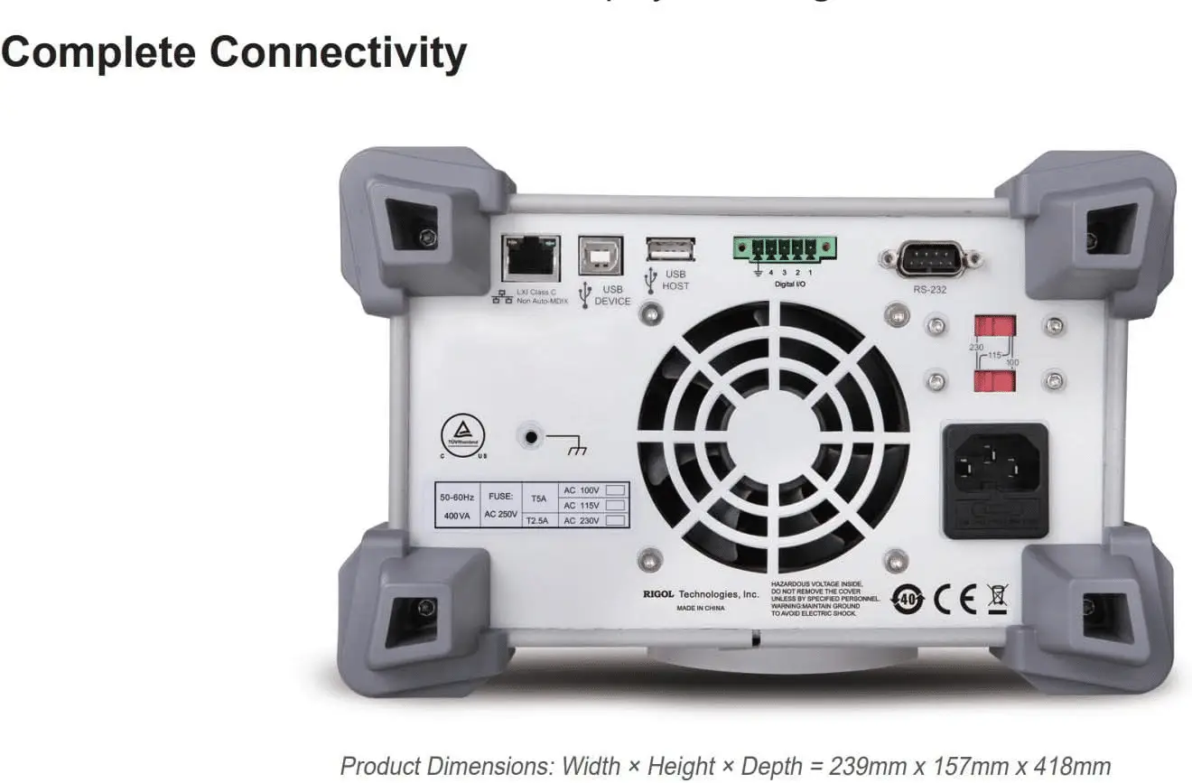 - Uscita temporizzazione standard, Misurazioni V,A,W integrate e visualizzazione della forma d’onda, Controllo indipendente per ogni canale, USB Host&Device (standard), Download per guida utente e scheda tecnica: https://rigolshop.eu/pub/media/wysiwyg/download /power_supply.rar Software download: https://rigolshop.eu/pub/media/wysiwyg/download/power_supply_software.rar