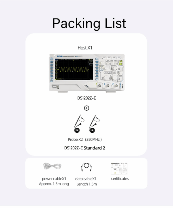 - Larghezza di banda del canale analogico: 200 MHz (DS1202Z-E): 100 MHz (DS1102Z-E)