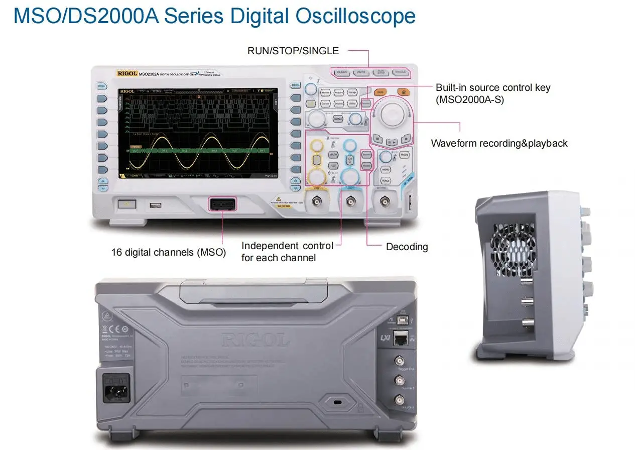 La serie MSO/DS2000A è stata sviluppata per l’ampio mercato mainstream degli oscilloscopi digitali, MSO2000A dispone di 2+16 canali ed è un potente oscilloscopio di segnale misto per applicazioni nel campo della progettazione e dei test integrati. Con 2 + 16 canali è un potente oscilloscopio di segnale misto. Zilloscopio per Applicazioni nel campo della progettazione e dei test integrati.MSO2000A è un potente oscilloscopio di segnale misto con 2+16 canali per applicazioni di progettazione e test embedded.