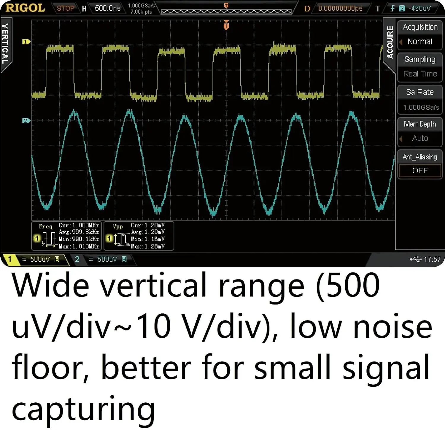 - Rumore di fondo più basso, gamma verticale più ampia: 500uV/div ~ 10V/div. Diverse interfacce: USB Host & Device, LAN (LXI), AUX, USB. Conforme agli standard degli strumenti di classe LXI CORE 2011 DEVICE e supporta il controllo dei comandi remoti. Gli accessori includono 2 sonde, un cavo USB, un alimentatore. Istruzioni per l’uso e scheda tecnica: https://rigolshop.eu/pub/media/wysiwyg/download/oscilloscope.rar