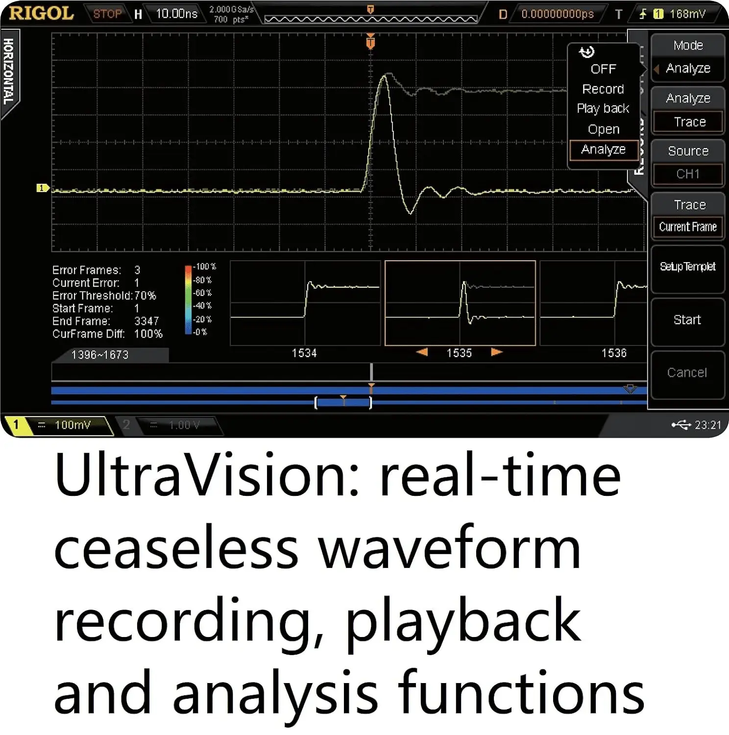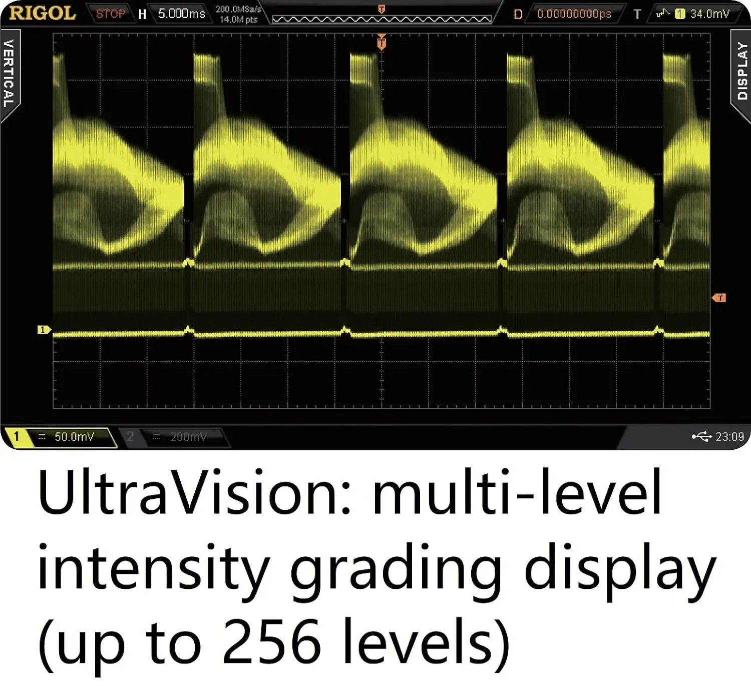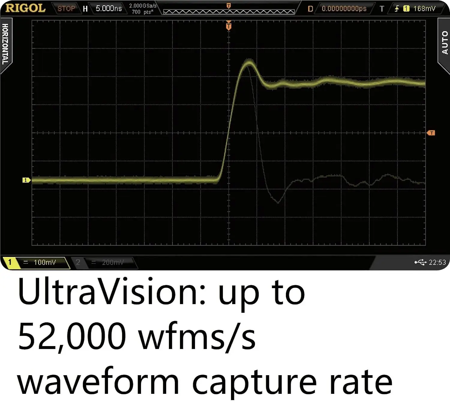 - Velocità di acquisizione della forma d’onda fino a 52.000 wfms/s, consentendo agli utenti di acquisire segnali istantanei e segnali anomali più velocemente. È possibile registrare, visualizzare e analizzare comodamente fino a 65.000 forme d’onda registrate. Questo aiuta anche a migliorare la capacità di acquisizione della forma d’onda e ad accelerare un corso di debug del circuito.