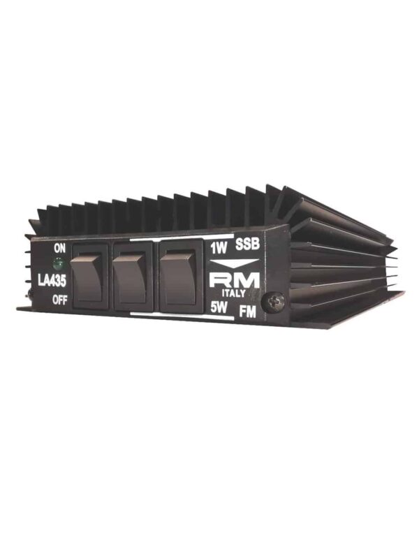 L'amplificatore lineare RM Italy LA 435 è progettato per la banda UHF da 70 cm, offrendo una potenza di 70 Watt max per ottimizzare le comunicazioni in frequenze da 405 a 480 MHz.