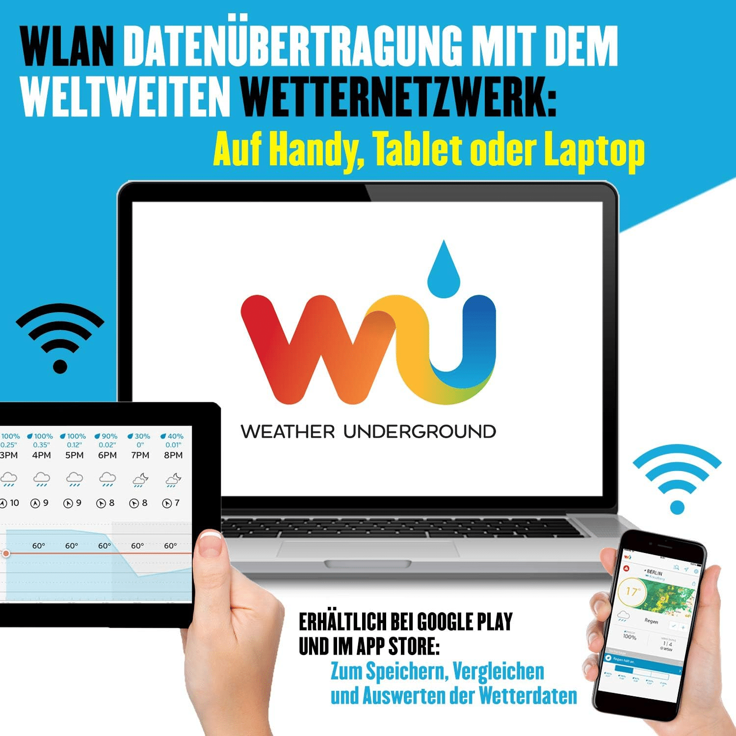 • L'opzione di connessione WiFi che consente alla stazione di trasmettere i dati meteo alla più grande rete di stazioni meteorologiche personali del mondo, Weather Underground.