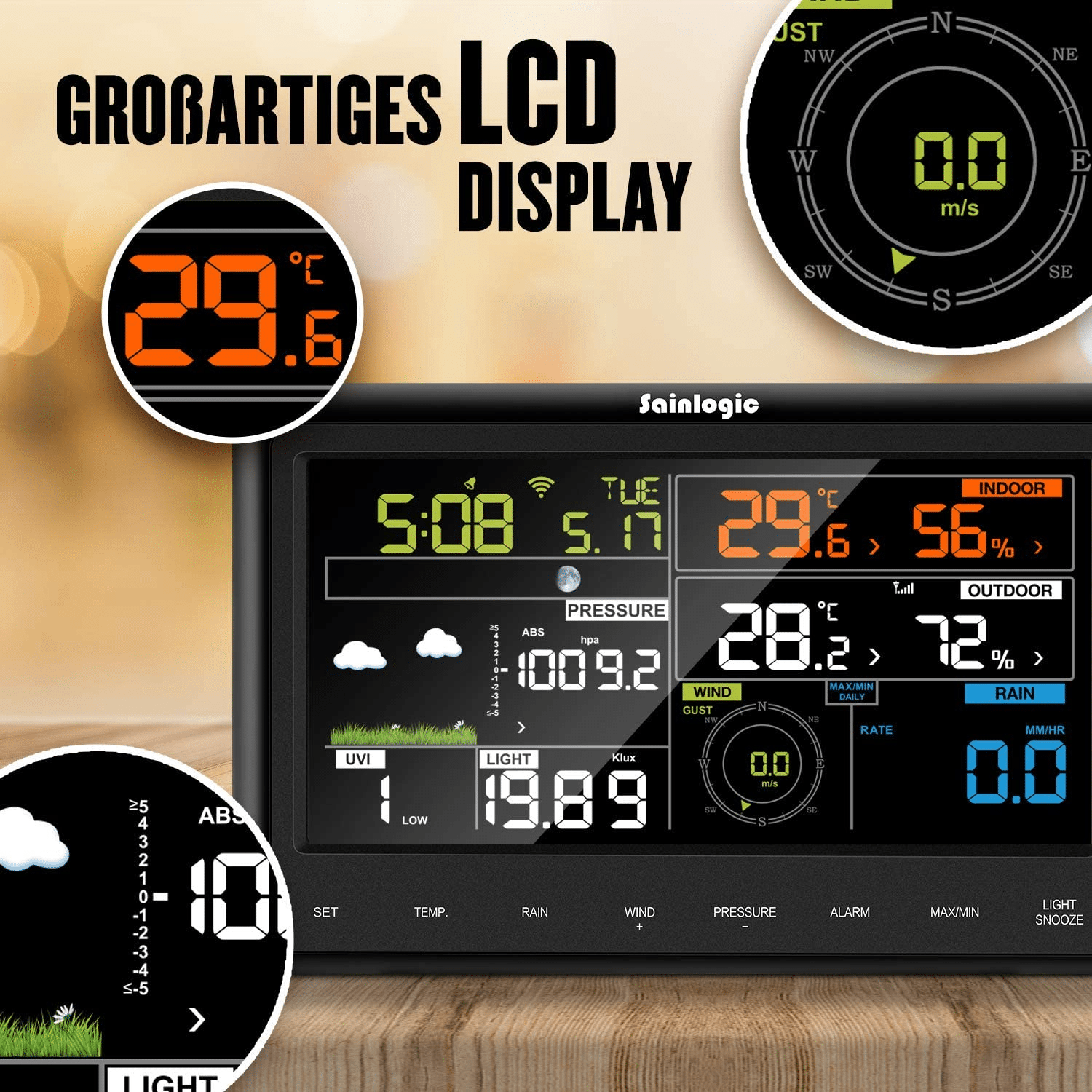 Sainlogic stazione meteo professionale / stazione meteo con sensore esterno / Sainlogic stazione meteo wifi