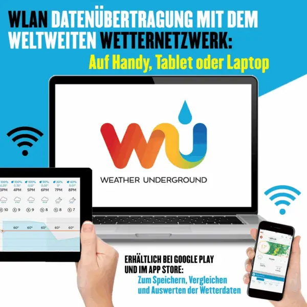 • L'opzione di connessione WiFi che consente alla stazione di trasmettere i dati meteo alla più grande rete di stazioni meteorologiche personali del mondo, Weather Underground.