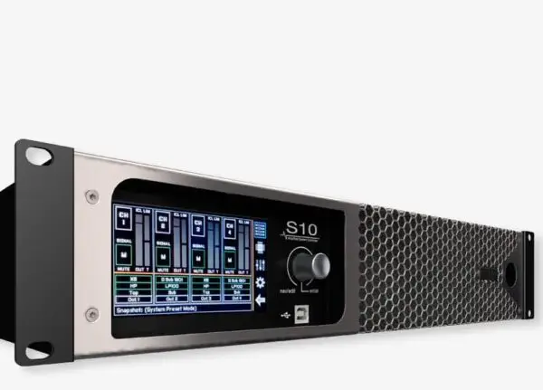 | Interfacce | 4 x XLR analogici/AES3 (commutabili), 4 SpeakON™NL4, PowerCON™16A, PowerCON™32 A (S20), Due porte di controllo Ethernet RJ45 con switch (con funzionalità loop-through), Porta USB 2.0 tipo B |