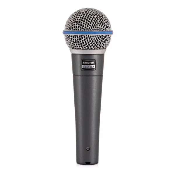 Il microfono dinamico Shure Beta 58A è progettato per la voce, offrendo prestazioni superiori con una risposta di frequenza ottimizzata e una figura polare supercardioide.