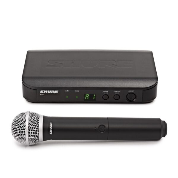 Sistema Microfono Wireless UHF Shure BLX24 PG58 S8, ideale per performance vocali con qualità audio professionale.