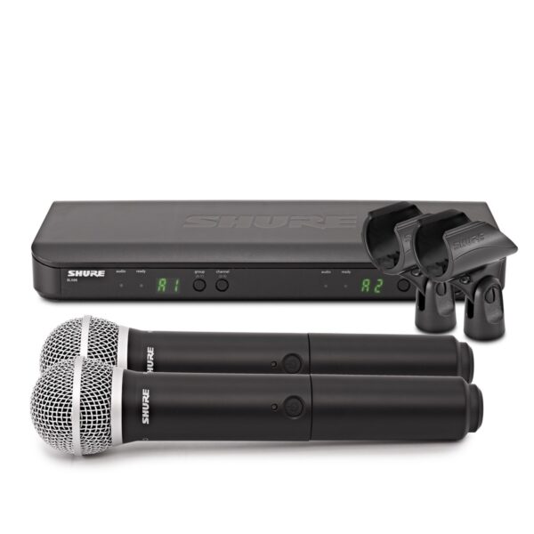 - Trasmettitore microfonico palmare BLX2 con 14 ore di autonomia