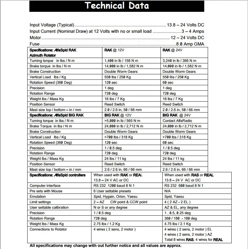 | Peso del rotore dell’antenna | 19 kg |