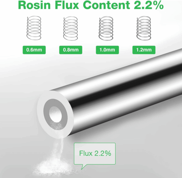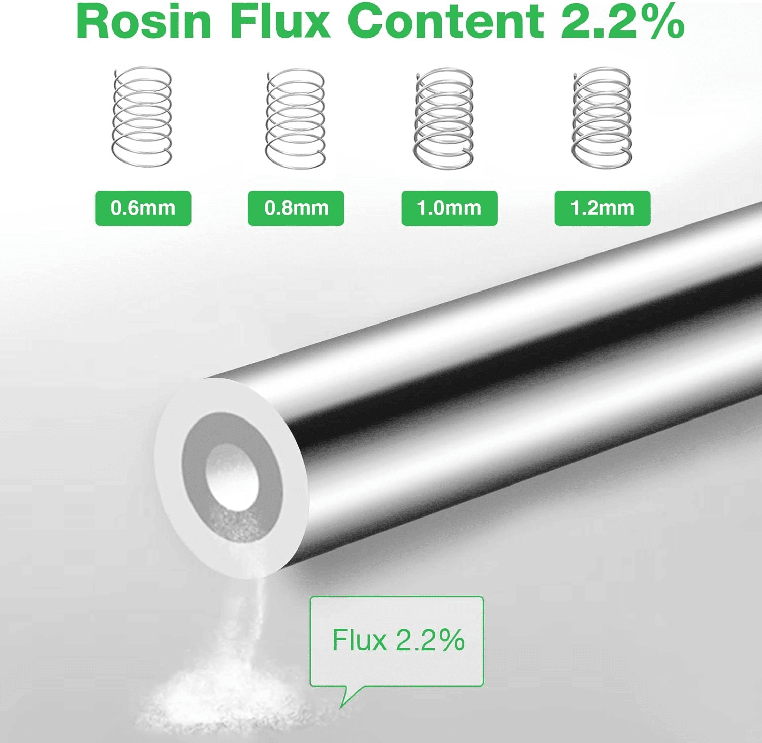 Stagno di alta qualità per la saldatura senza piombo, formulato con un contenuto di flussante del 2.2%. Adatto per applicazioni elettroniche.