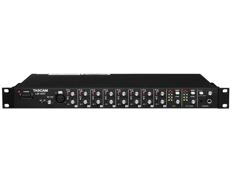 Il mixer di linea Tascam LM8 offre 8 ingressi bilanciati di livello di linea (-10/+4db). Inoltre, è fornito un ingresso di livello microfonico commutabile sul canale 1.